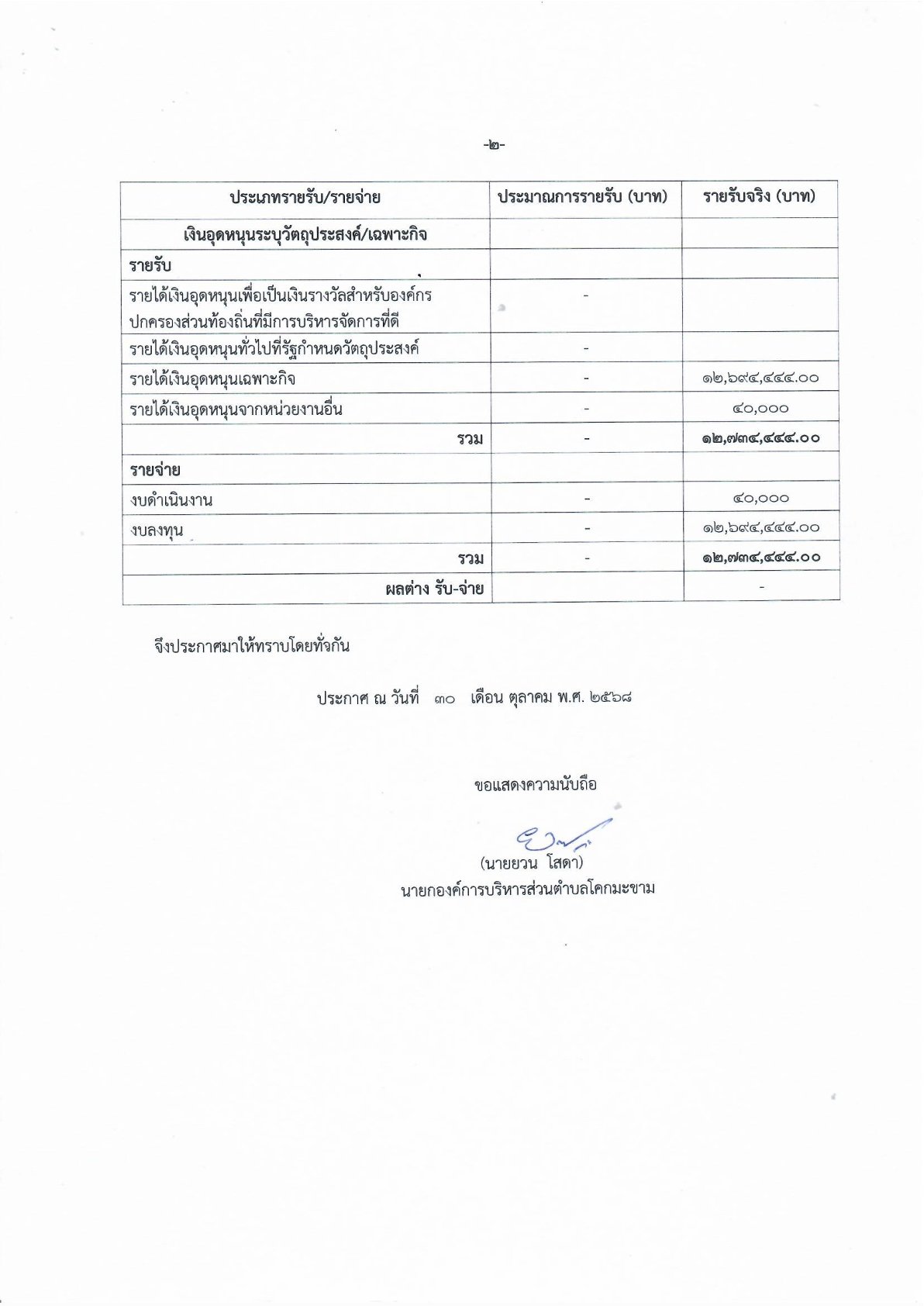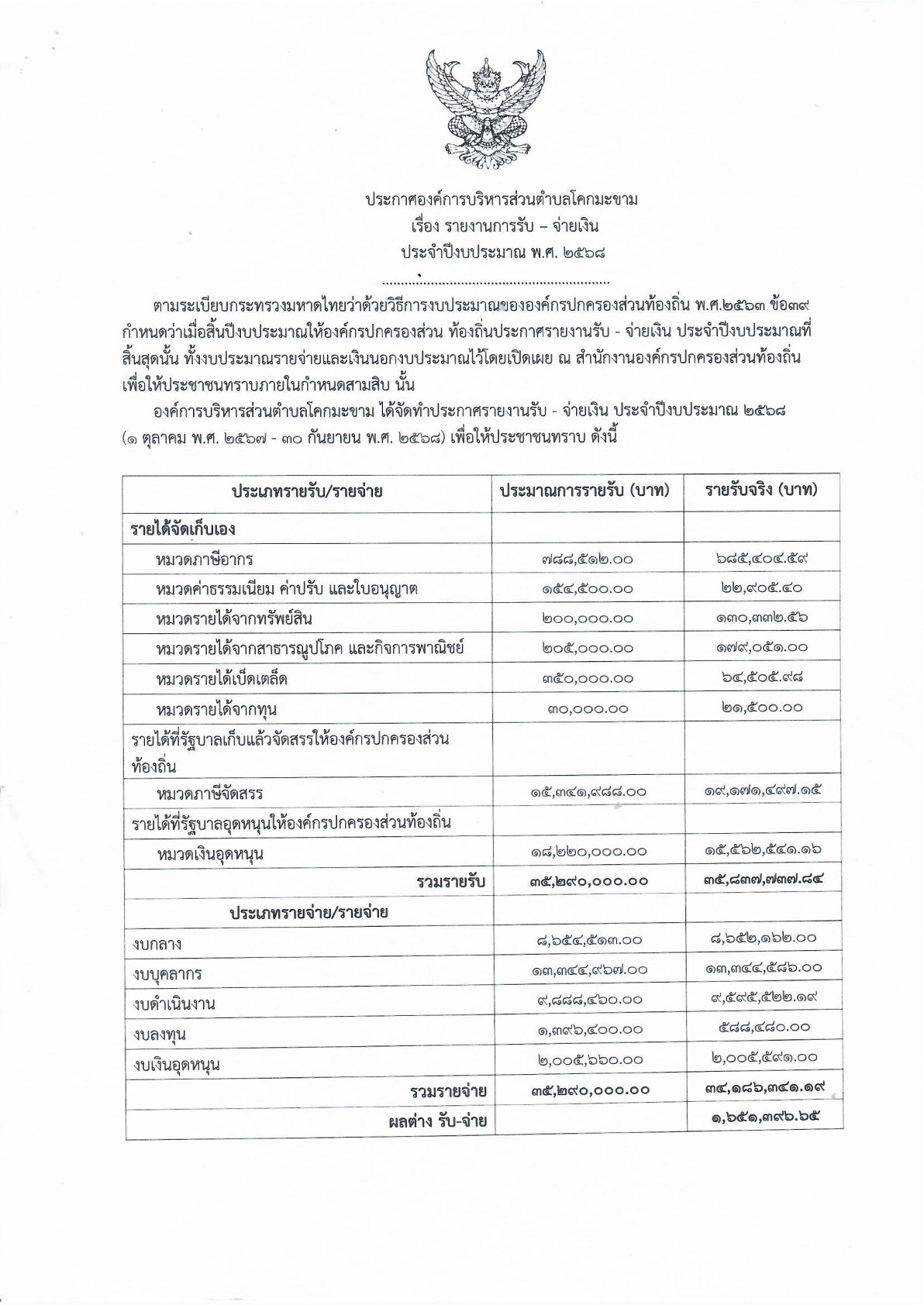 รายงานการรับ-จ่ายเงิน 2568