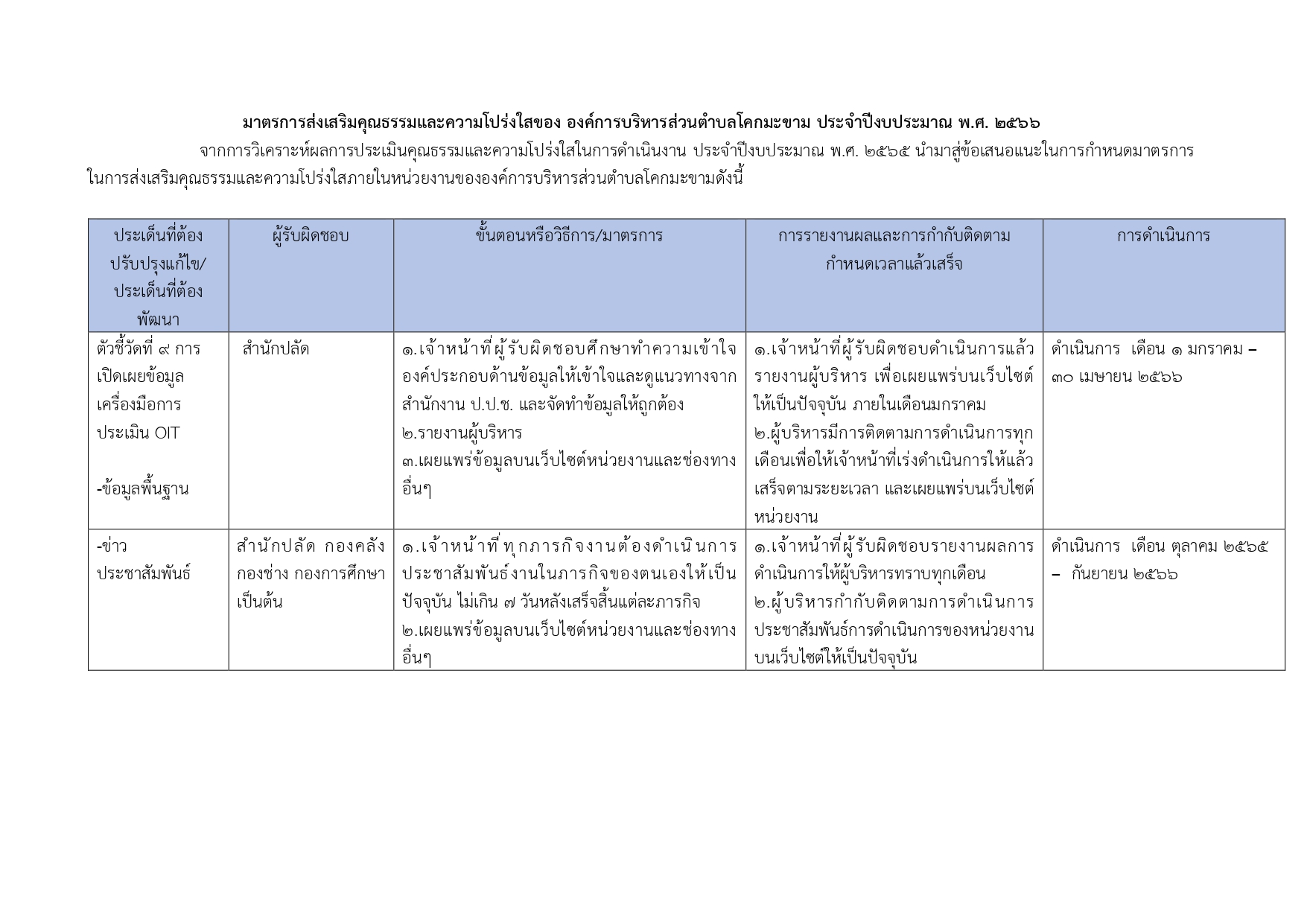 มาตรการส่งเสริมความโปร่งใสและป้องกันการทุจริตภายในหน่วยงาน