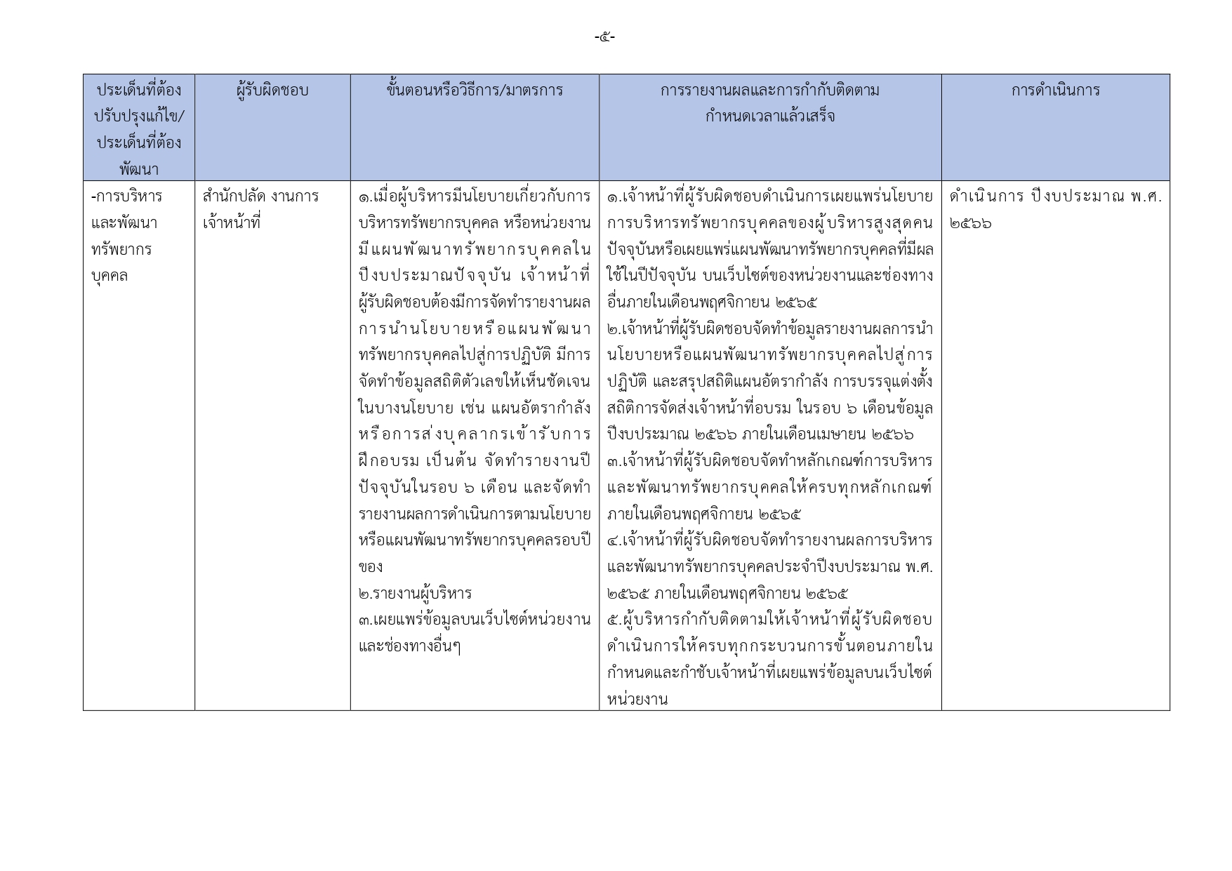 การดำเนินการตามนโยบายหรือแผนการบริหารทรัพยากรบุคคล