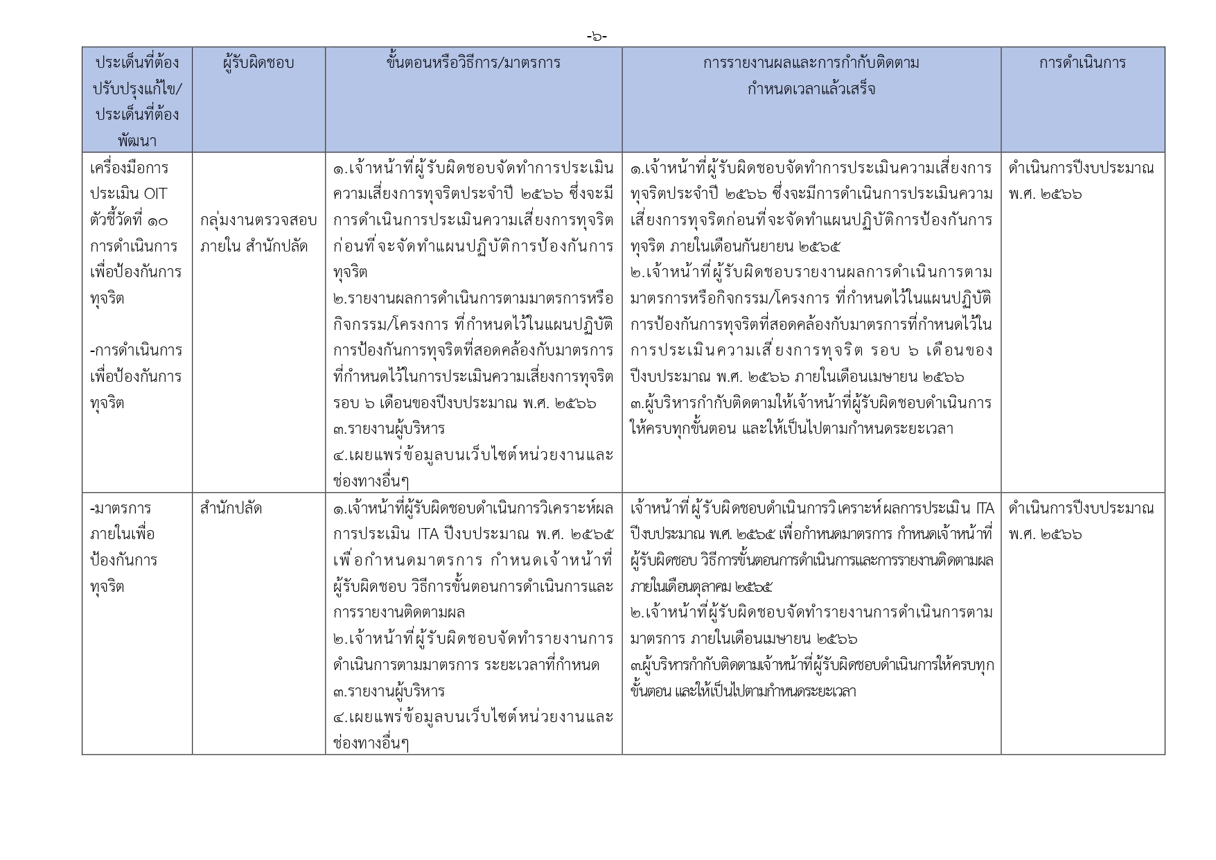 รายงานการกำกับติดตามการดำเนินการป้องกันการทุจริตประจำปีรอบ 6 เดือน