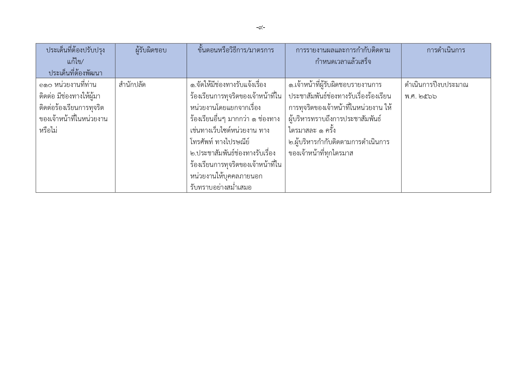 รายงานผลการดำเนินการป้องกันการทุจริตประจำปี
